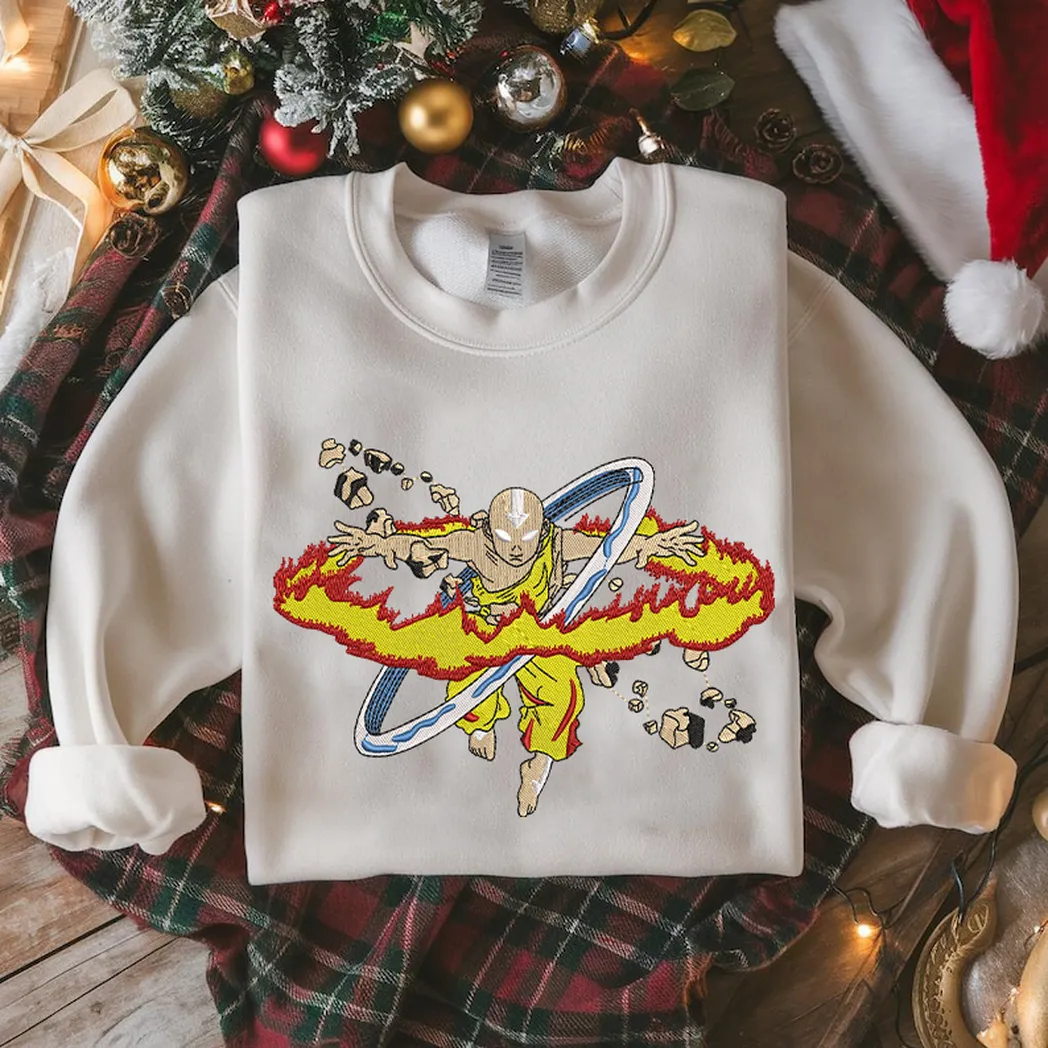 Aang Anime Embroidered Sweatshirt Fashion Style For Couples, Valentines Gift For Him/Her