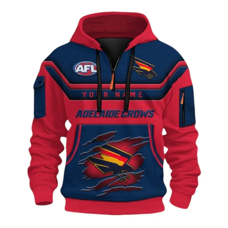 Custom Half-Zip Hoodie 3D Printed for Adelaide Crows Fans – Game-Ready Comfort Meets Personalized Power