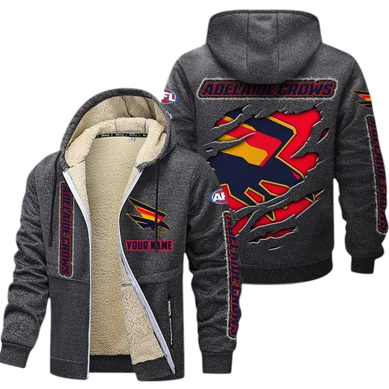 Adelaide Crows Fans Gift Lamb Fleece Thick Coat, All Over Print Thick Coat For Sport Fan, Custom Name AFL145071825137 – Dark gray