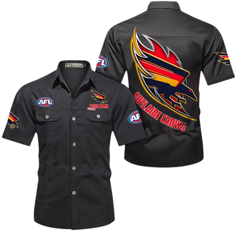Adelaide Crows Fans Gift Short Sleeved Shirt, All Over Print Shỉt For Sport Fan, Custom Name AFL155071425139 – Black