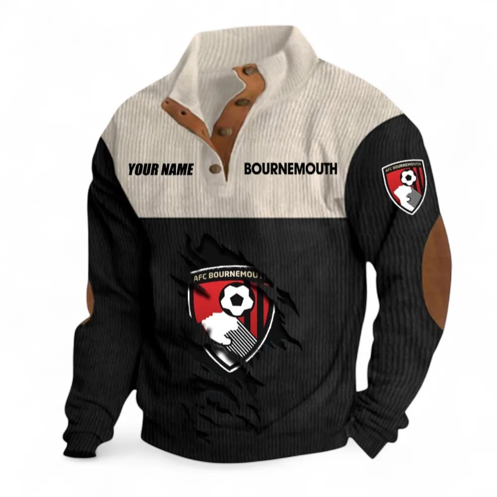 AFC Bournemouth Fans Gift Men’s Stand Up Collar Base Shirt, All Over Print Men’s Stand Up Collar Base Shirt For Sport Fan, Custom Name EPL117073125237-Black