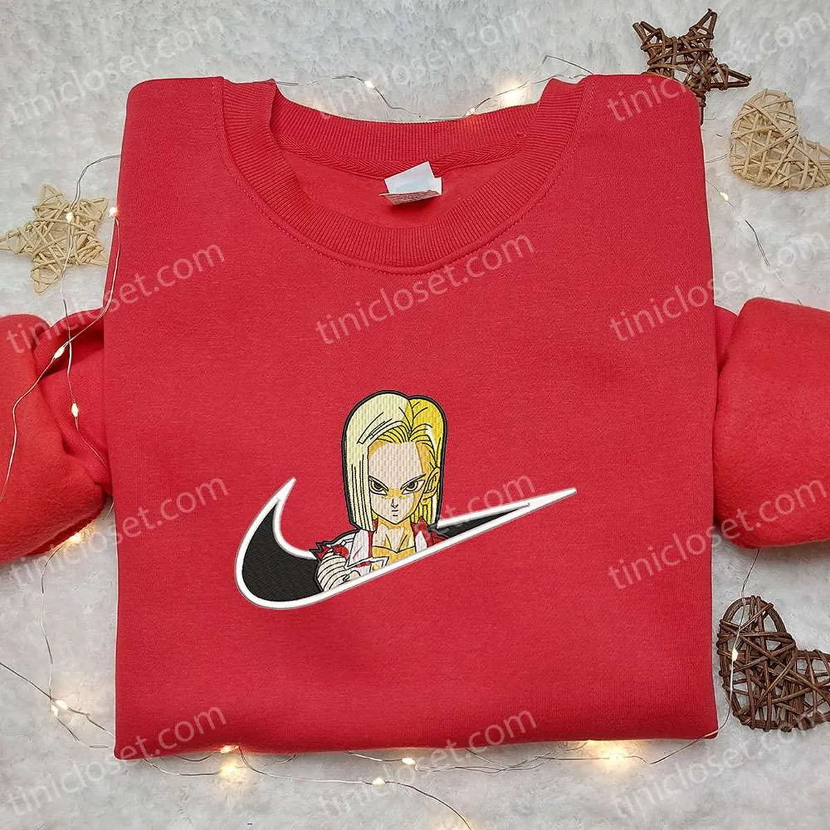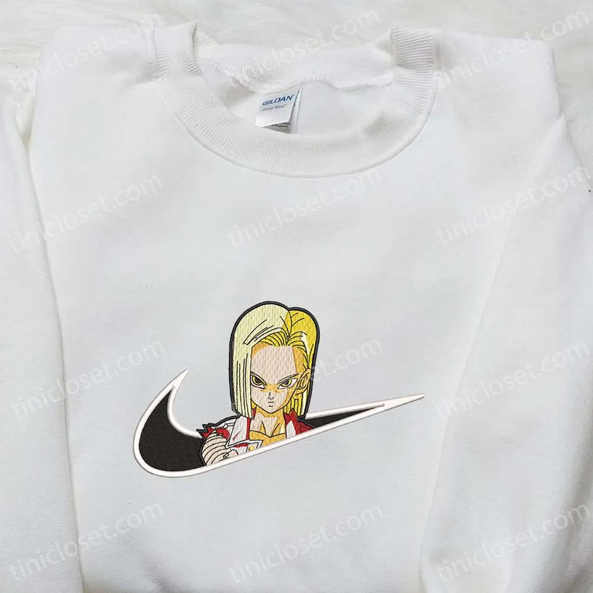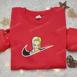 Android 18 x Nike Swoosh Anime Embroidered Shirt, Dragon Ball Embroidered Shirt, Nike Inspired Embroidered Shirt