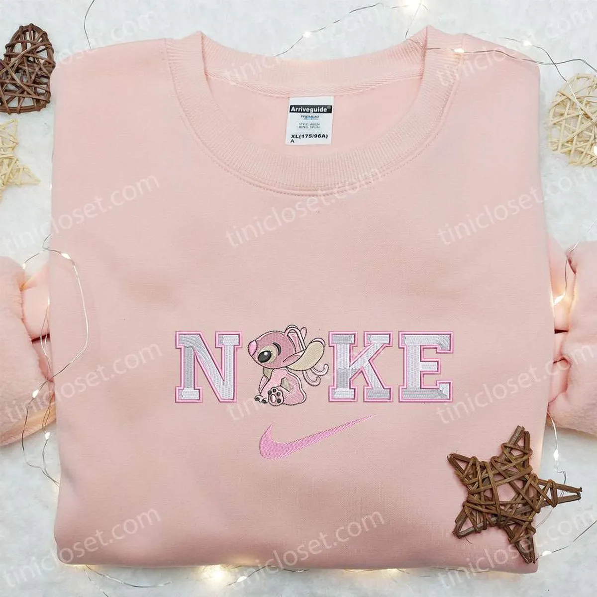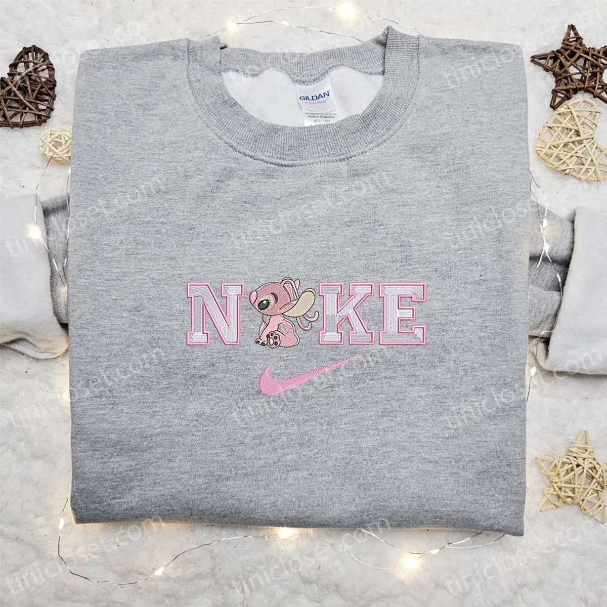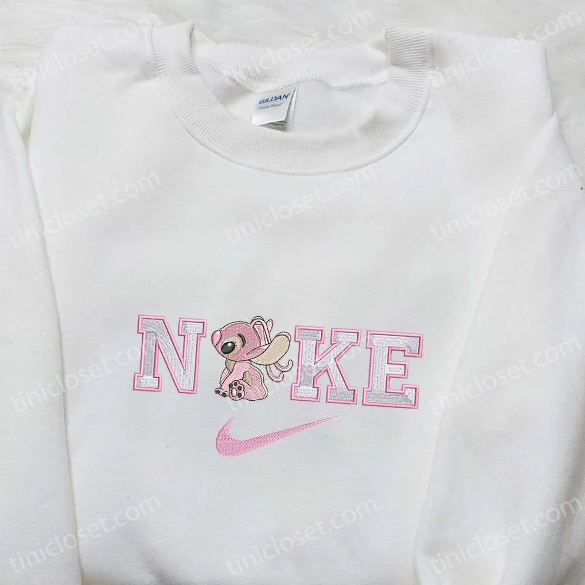 Angel x Nike Cartoon Embroidered Shirt, Lilo and Stitch Embroidered Shirt, Nike Inspired Embroidered Shirt