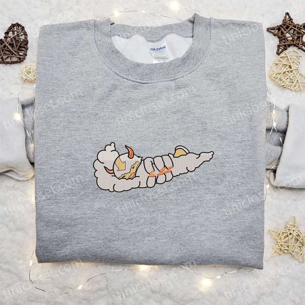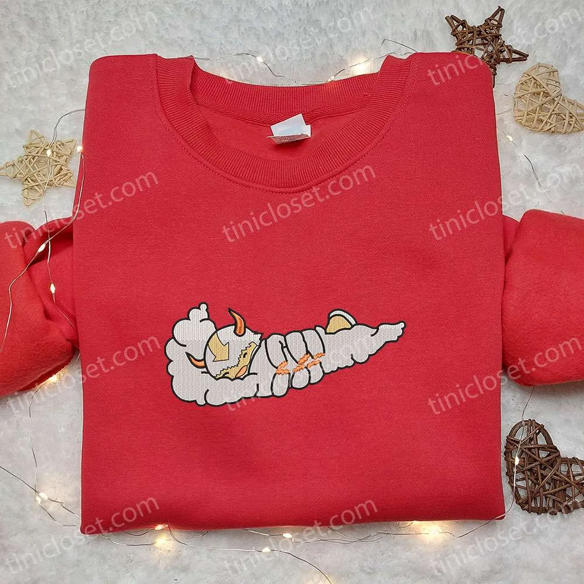 Appa Cloud x Nike Swoosh Anime Embroidered Sweatshirt, Avatar Embroidered Shirt, Nike Inspired Embroidered Shirt