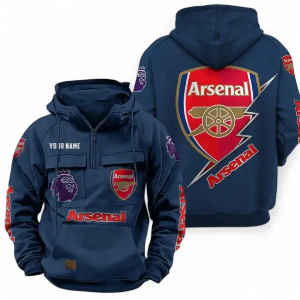 Arsenal F.C. Fans Gift Tactical Quarter Zip Hoodie, All Over Print Tactical Quarter Zip Hoodie For Sport Fan, Custom Name EPL113073025448-Dark Blue