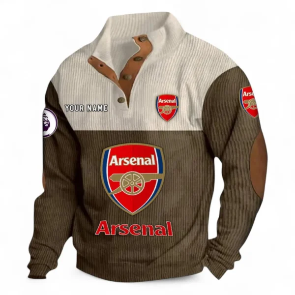 Arsenal Fans Gift Men’s Stand Up Collar Base Shirt, All Over Print Men’s Stand Up Collar Base Shirt For Sport Fan, Custom Name EPL118073125558-Brown