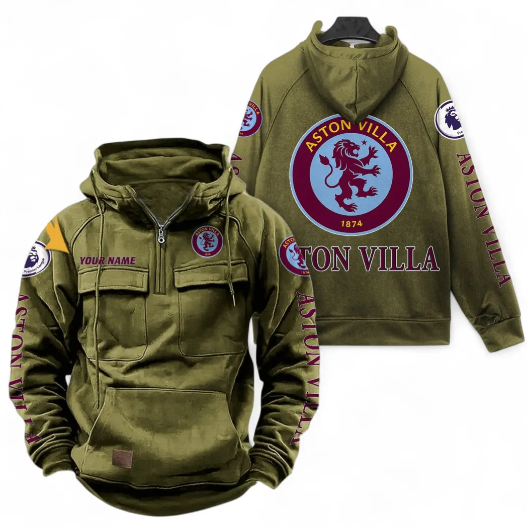 Aston Villa F.C Fans Gift Tactical Quarter Zip Hoodie, All Over Print Tactical Quarter Zip Hoodie For Sport Fan, Custom Name EPL111073025118-Khaki