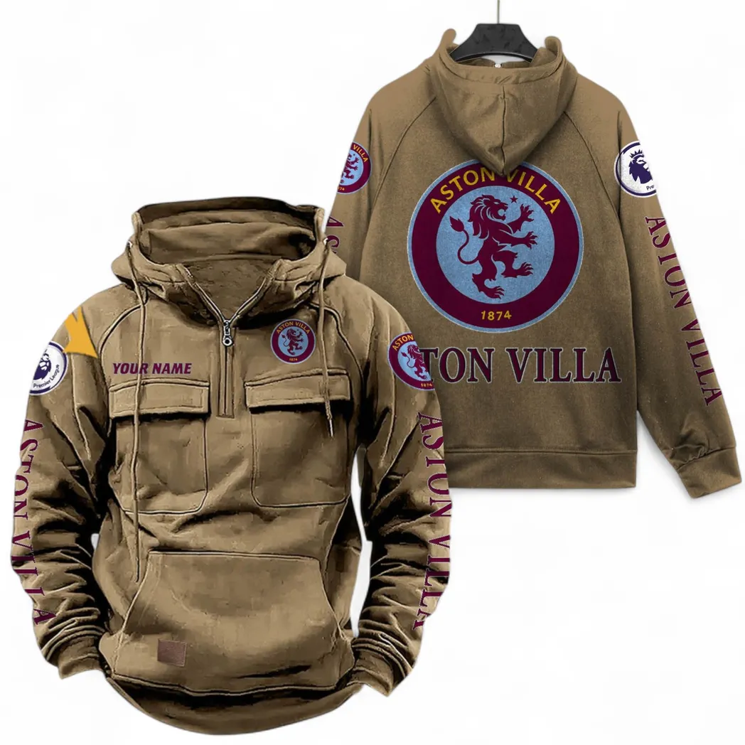 Aston Villa F.C Fans Gift Tactical Quarter Zip Hoodie, All Over Print Tactical Quarter Zip Hoodie For Sport Fan, Custom Name EPL111073025118-Khaki