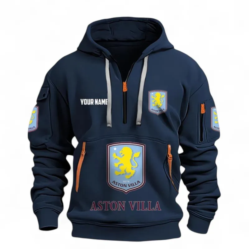 Aston Villa Fans Gift Hoodie Half Zipper, All Over Print Hoodie Half Zipper For Sport Fan, Custom Name EPL116073125005-Navy