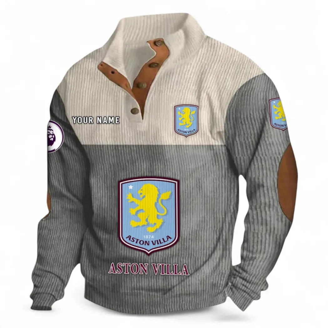 Aston Villa Fans Gift Men’s Stand Up Collar Base Shirt, All Over Print Men’s Stand Up Collar Base Shirt For Sport Fan, Custom Name EPL118073125564-Gray