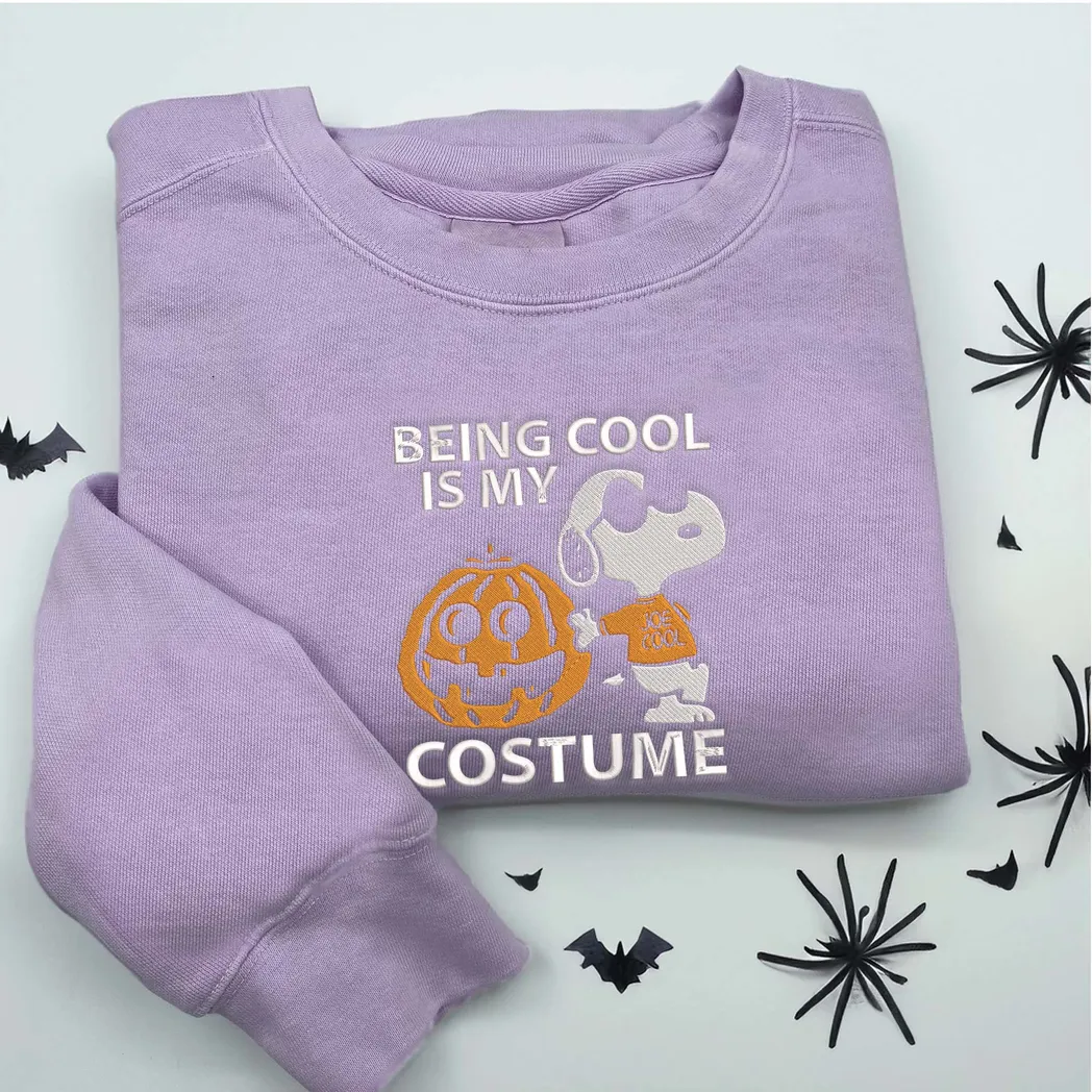 Being Cool Is My Costume Pumpkin Embroidered Sweatshirt Fashion Style