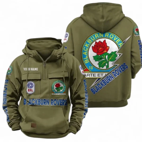 Blackburn Rovers Fans Gift Tactical Quarter Zip Hoodie, All Over Print Tactical Quarter Zip Hoodie For Sport Fan, Custom Name EPL113073025484-Army Green