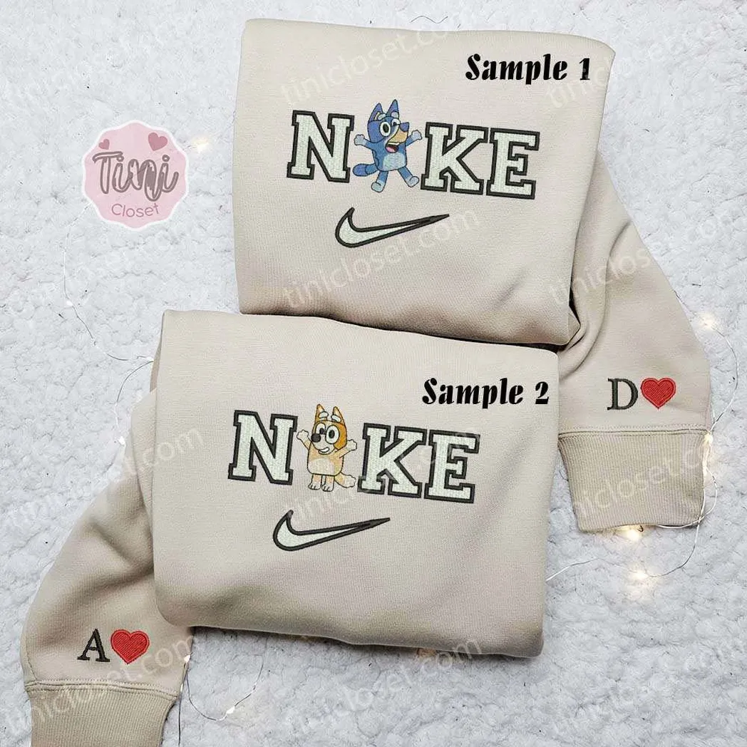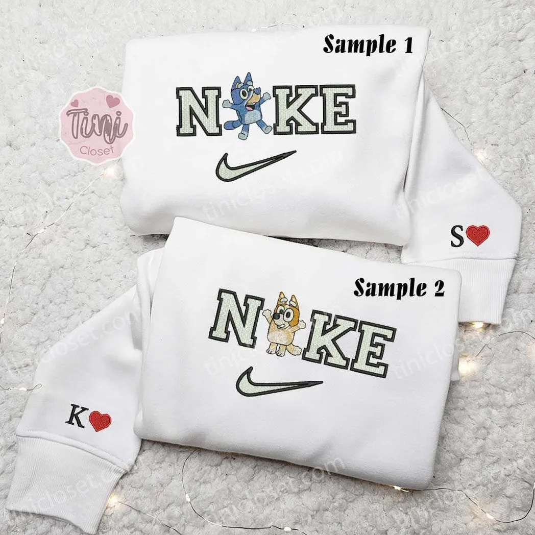 Bluey And Bingo Heeler Cartoon x Nike Embroidered Shirt, Embroidered Sweatshirt Fashion Style For Couples