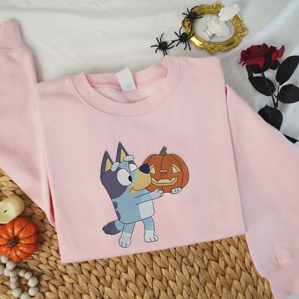 Bluey Cartoon Halloween Embroidered Sweatshirt Fashion Style