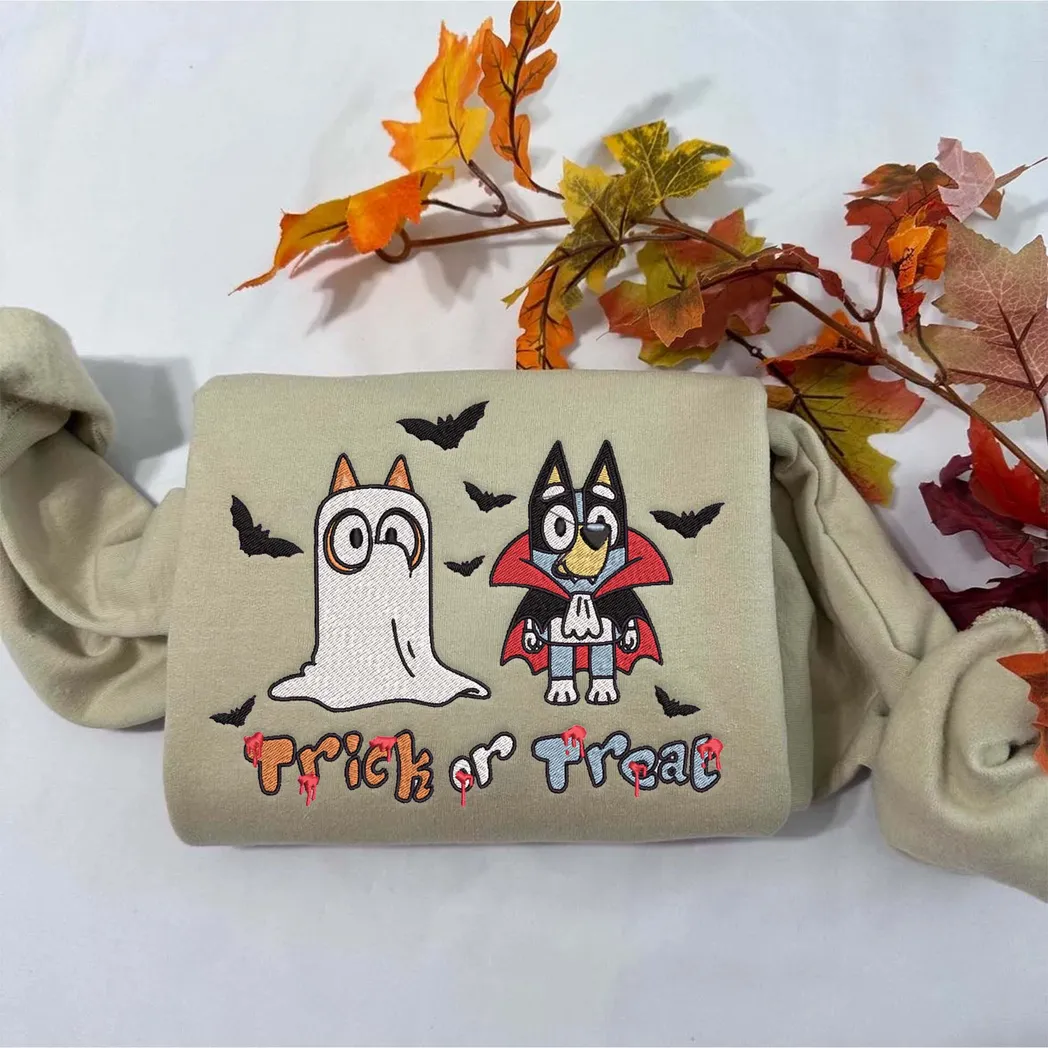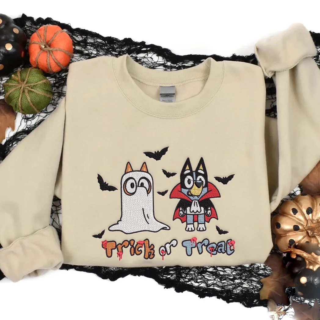 Bluey Family Cartoon Halloween Embroidered Sweatshirt Fashion Style