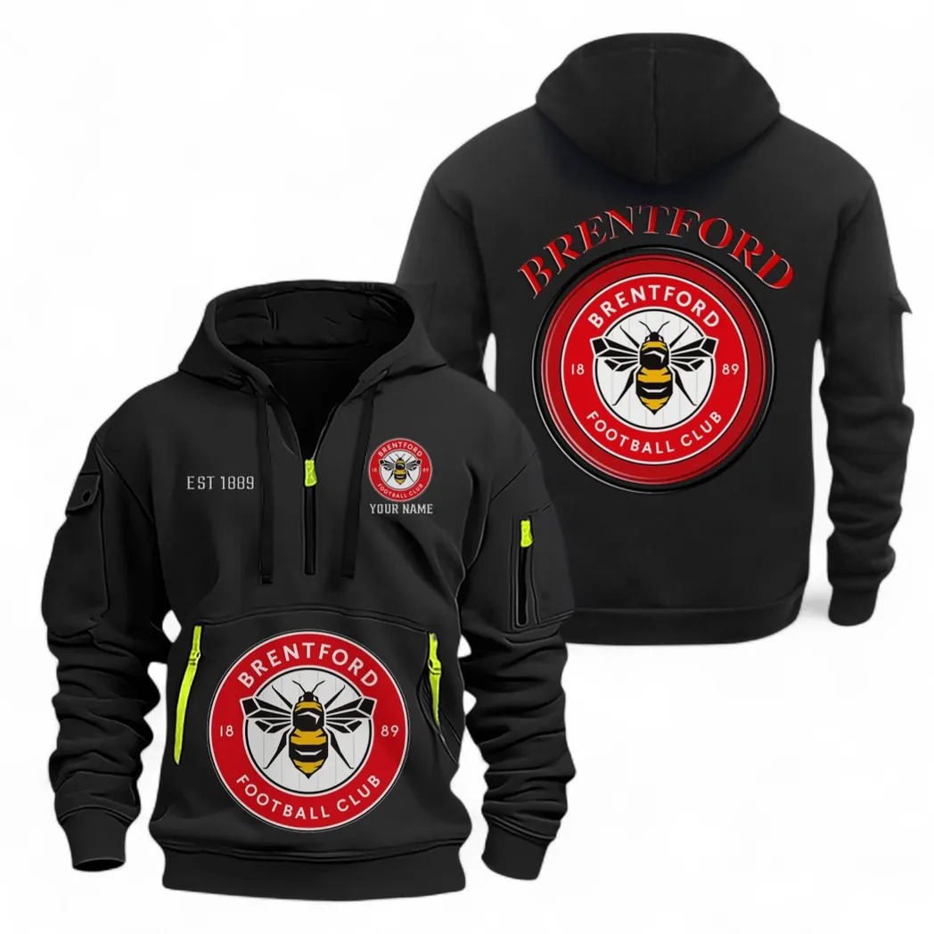 Brentford FC Fans Gift Hoodie Half Zipper, All Over Print Hoodie Half Zipper For Sport Fan, Custom Name EPL110073025236-Black