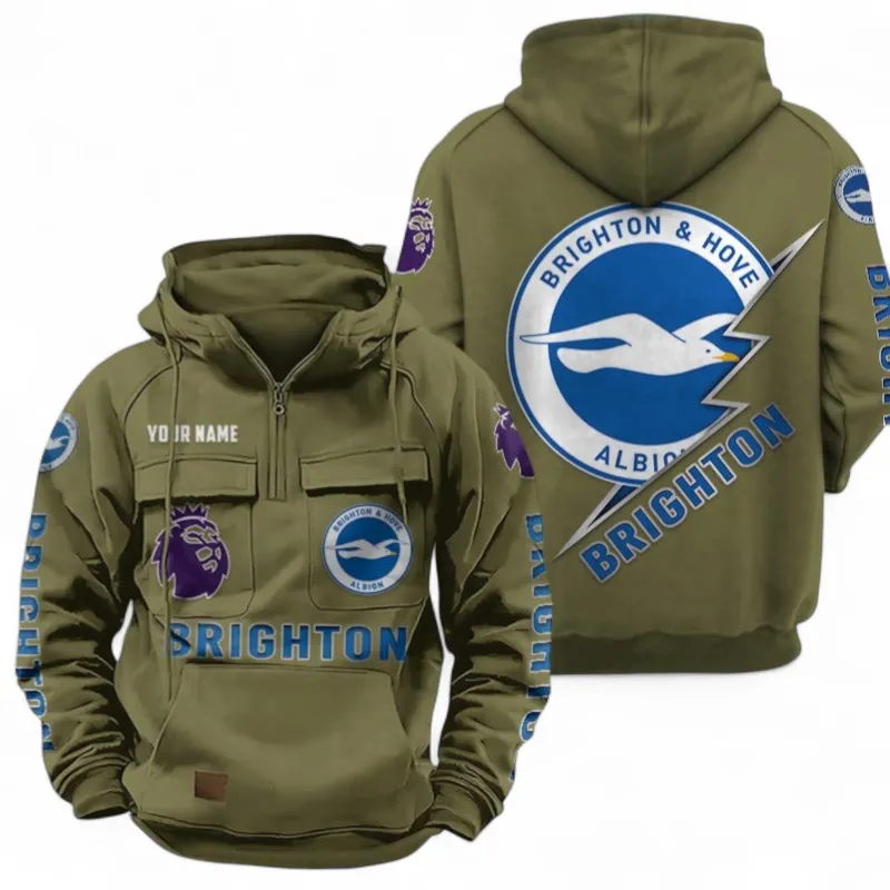 Brighton And Hove Albion F.C Fans Gift Tactical Quarter Zip Hoodie, All Over Print Tactical Quarter Zip Hoodie For Sport Fan, Custom Name EPL113073025449-Army Green