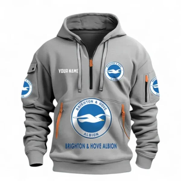 Brighton Fans Gift Hoodie Half Zipper, All Over Print Hoodie Half Zipper For Sport Fan, Custom Name EPL116073125023-Grey