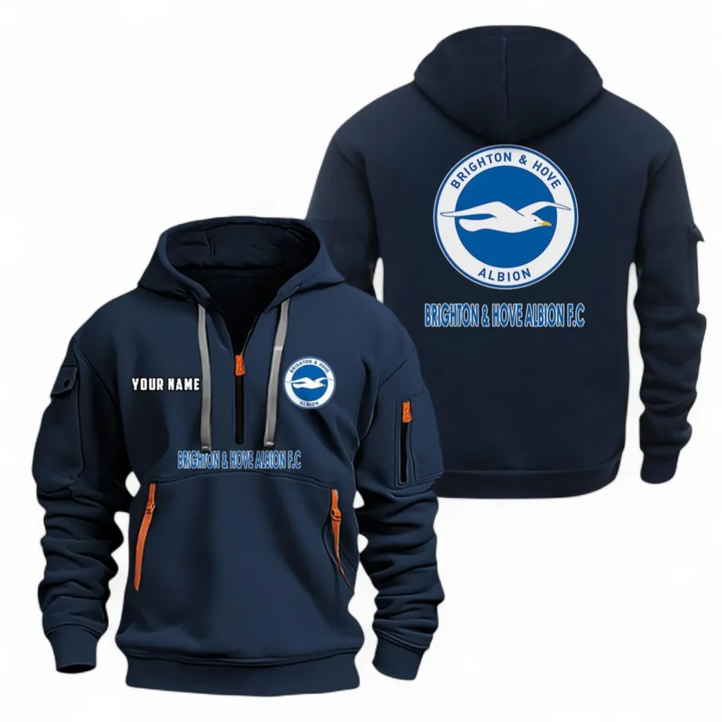 Brighton & Hove Albion Fans Gift Hoodie Half Zipper, All Over Print Hoodie Half Zipper For Sport Fan, Custom Name EPL104072925460-Black