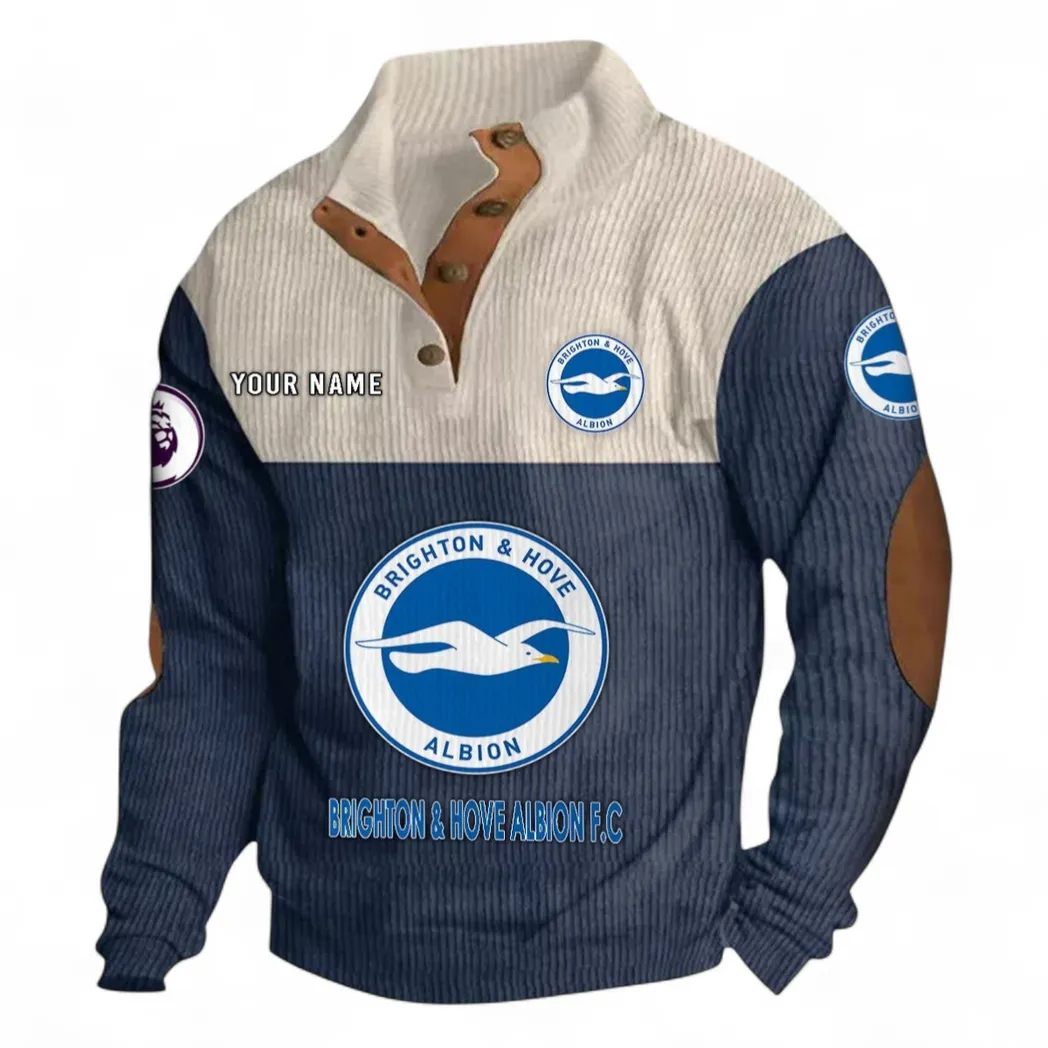 Custom Brighton & Hove Albion Stand-Up Collar Hoodie – Fan-First Style, Cold-Weather Ready