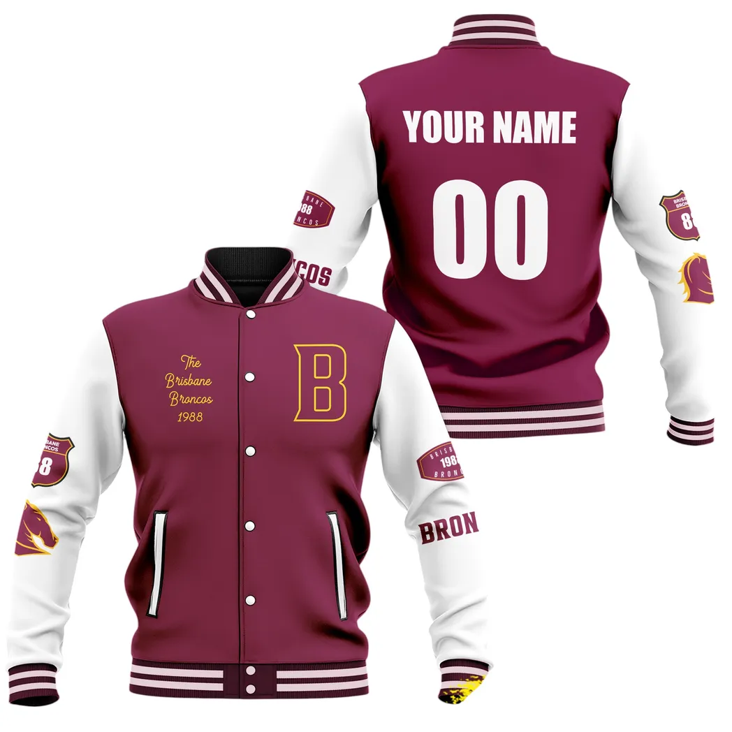 Brisbane Broncos Baseball Jacket, All Over Print Baseball Jacket Brisbane Broncos DNRL139712034