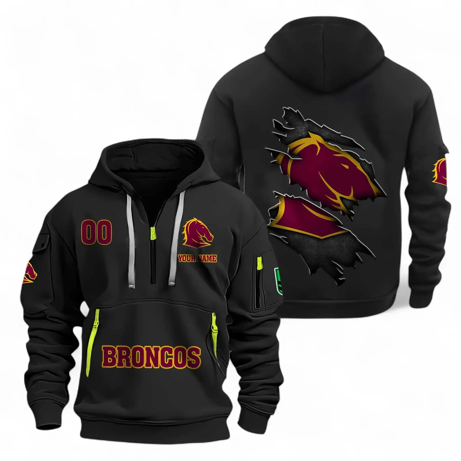 Brisbane Broncos Fans Gift Hoodie Half Zipper, All Over Print Hoodie Half Zipper For Sport Fan, Custom Name NRL170071525341-Black