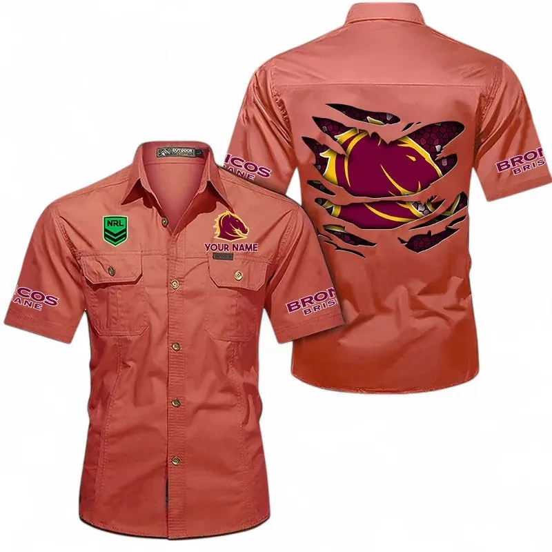 Brisbane Broncos Fans Gift Short Sleeved Shirt, All Over Print Short Sleeved Shirt For Sport Fan, Custom Name NRL171071625558-Khaki