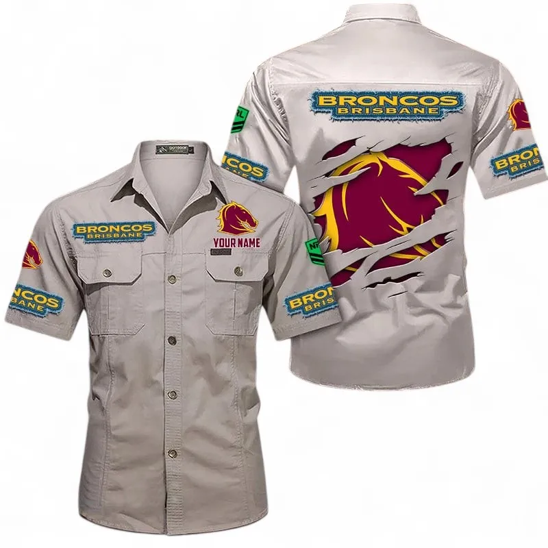 Brisbane Broncos Fans Gift Short Sleeved Shirt, All Over Print Short Sleeved Shirt For Sport Fan, Custom Name NRL172071625342-Khaki
