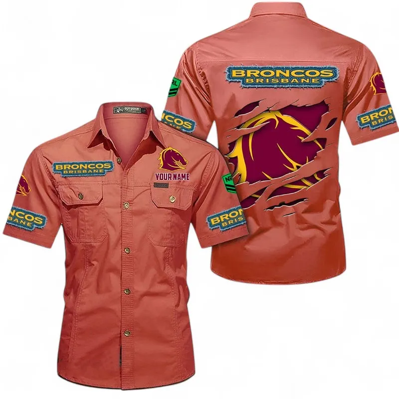 Brisbane Broncos Fans Gift Short Sleeved Shirt, All Over Print Short Sleeved Shirt For Sport Fan, Custom Name NRL172071625342-Turmeric