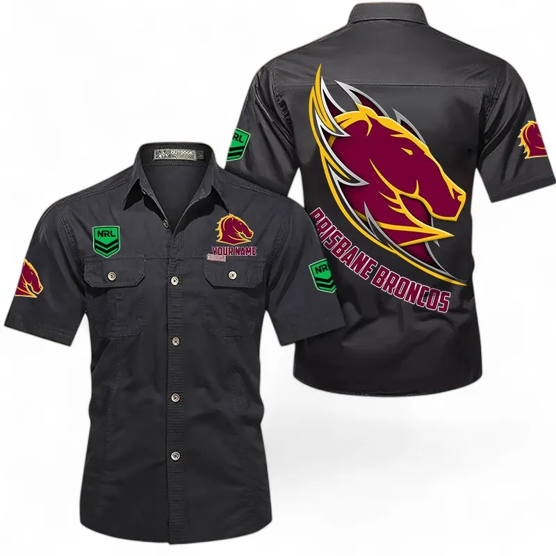Brisbane Broncos Fans Gift Short Sleeved Shirt, All Over Print Short Sleeved Shirt For Sport Fan, Custom Name NRL173071625012-Black