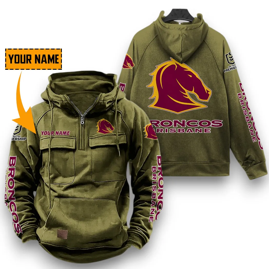 Brisbane Broncos NRL Tactical Quarter Zip Hoodie NRL29012325563, Gift For Fan Brisbane Broncos – Army Green