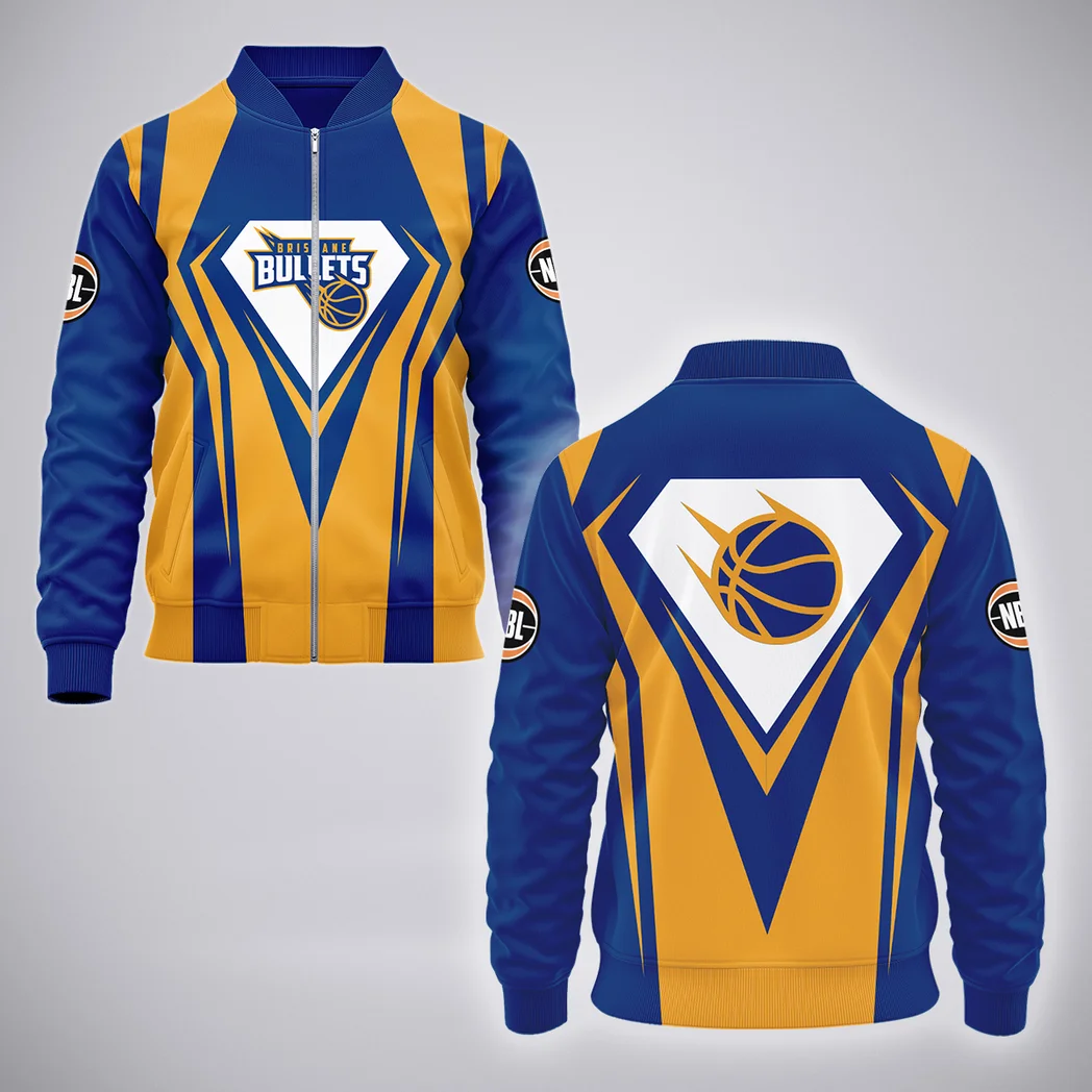 Rep your loyalty in style with this custom Brisbane Bullets bomber jacket, built for fans who want to stay warm, look sharp, and show their pride all season long. With a classic silhouette and a fresh custom print, it’s the ultimate blend of team spirit and street-ready fashion.