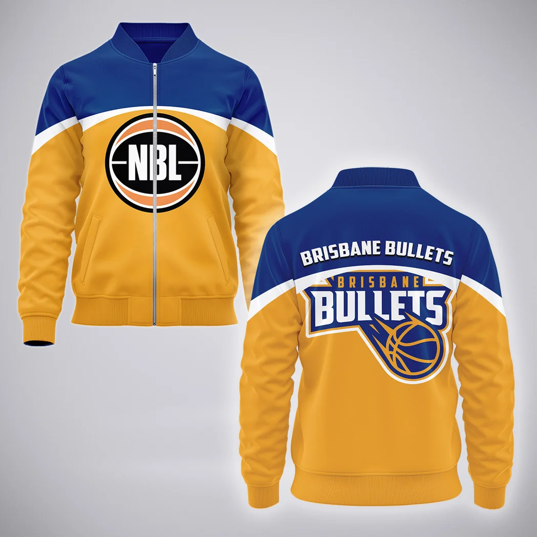 Rep your loyalty in style with this custom Brisbane Bullets bomber jacket, built for fans who want to stay warm, look sharp, and show their pride all season long. With a classic silhouette and a fresh custom print, it’s the ultimate blend of team spirit and street-ready fashion.