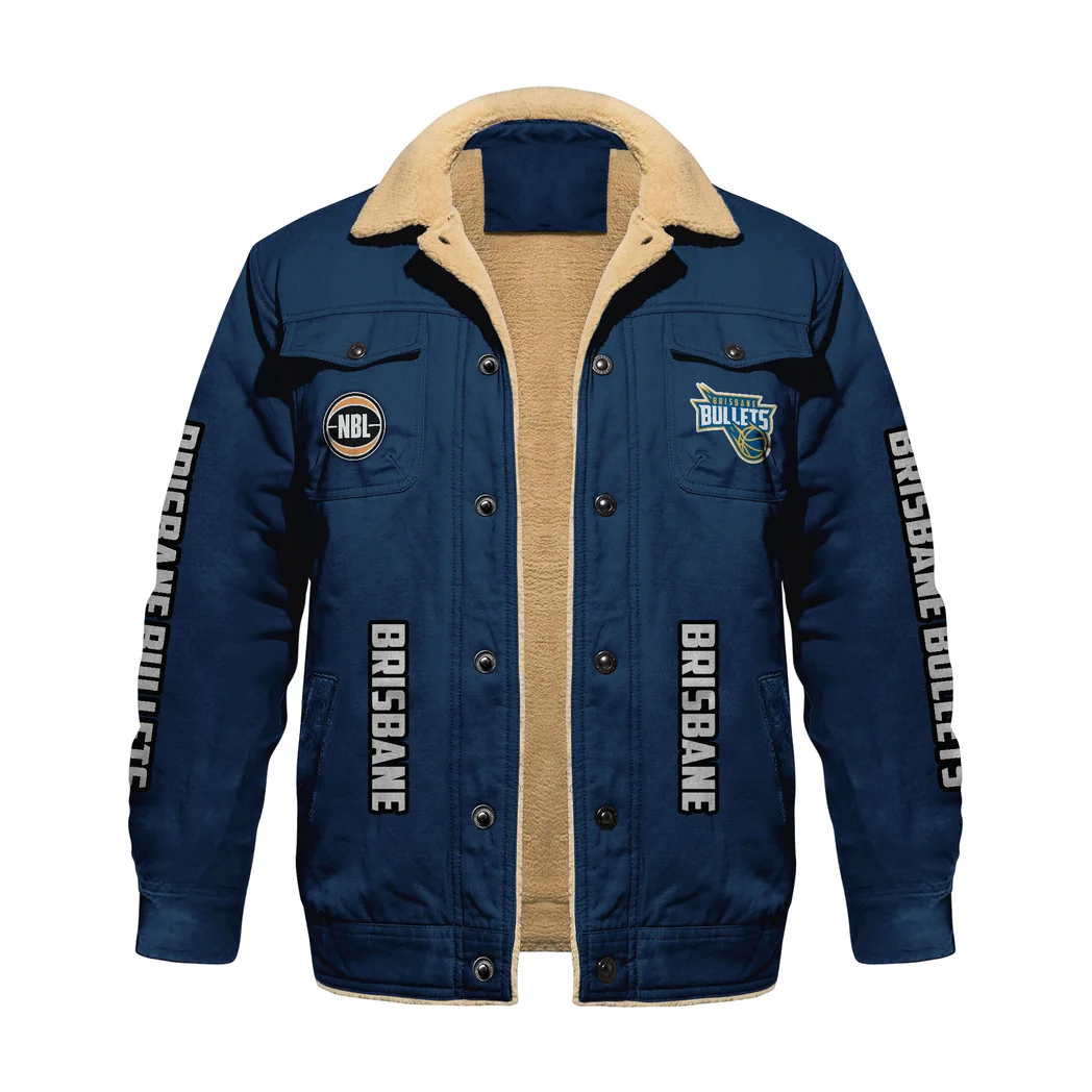Brisbane Bullets Jacket Fur Collar Fleece NBL 2025 For Fan Brisbane Bullets HVN1162072525BB HVN1162072525BBCFJ – Blue