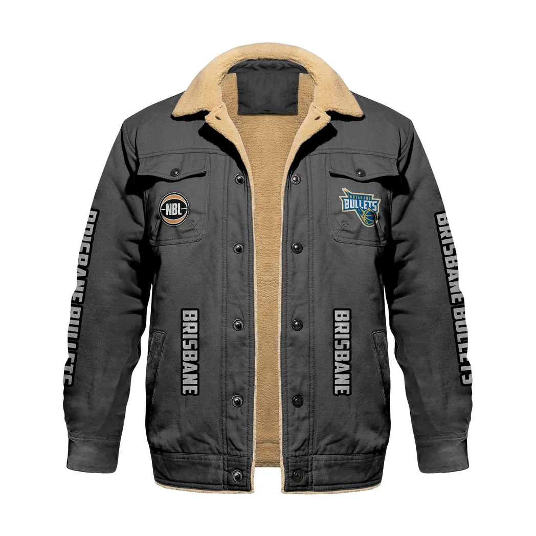 Brisbane Bullets Jacket Fur Collar Fleece  NBL 2025 For Fan Brisbane Bullets HVN1162072525BB  HVN1162072525BB - Black
