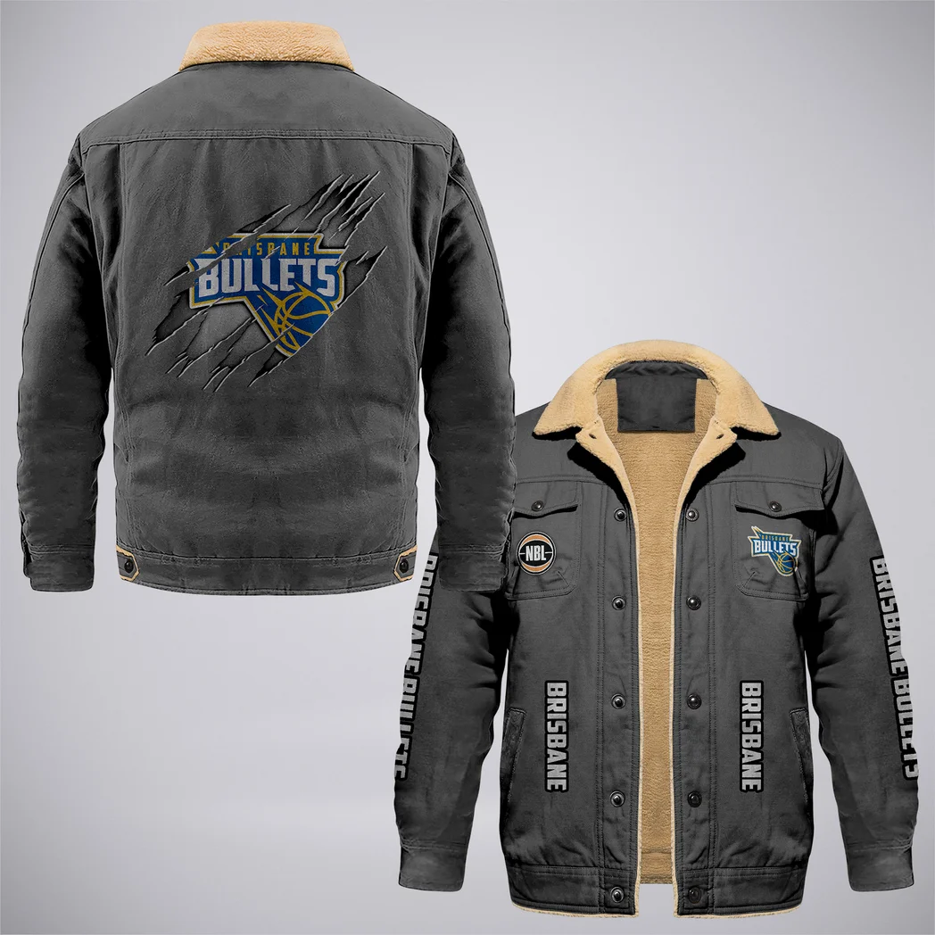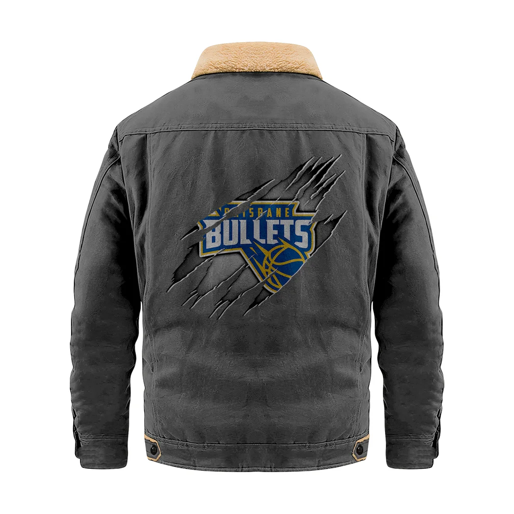 Brisbane Bullets Jacket Fur Collar Fleece NBL 2025 For Fan Brisbane Bullets HVN1162072525BB HVN1162072525BBCFJ – Gray