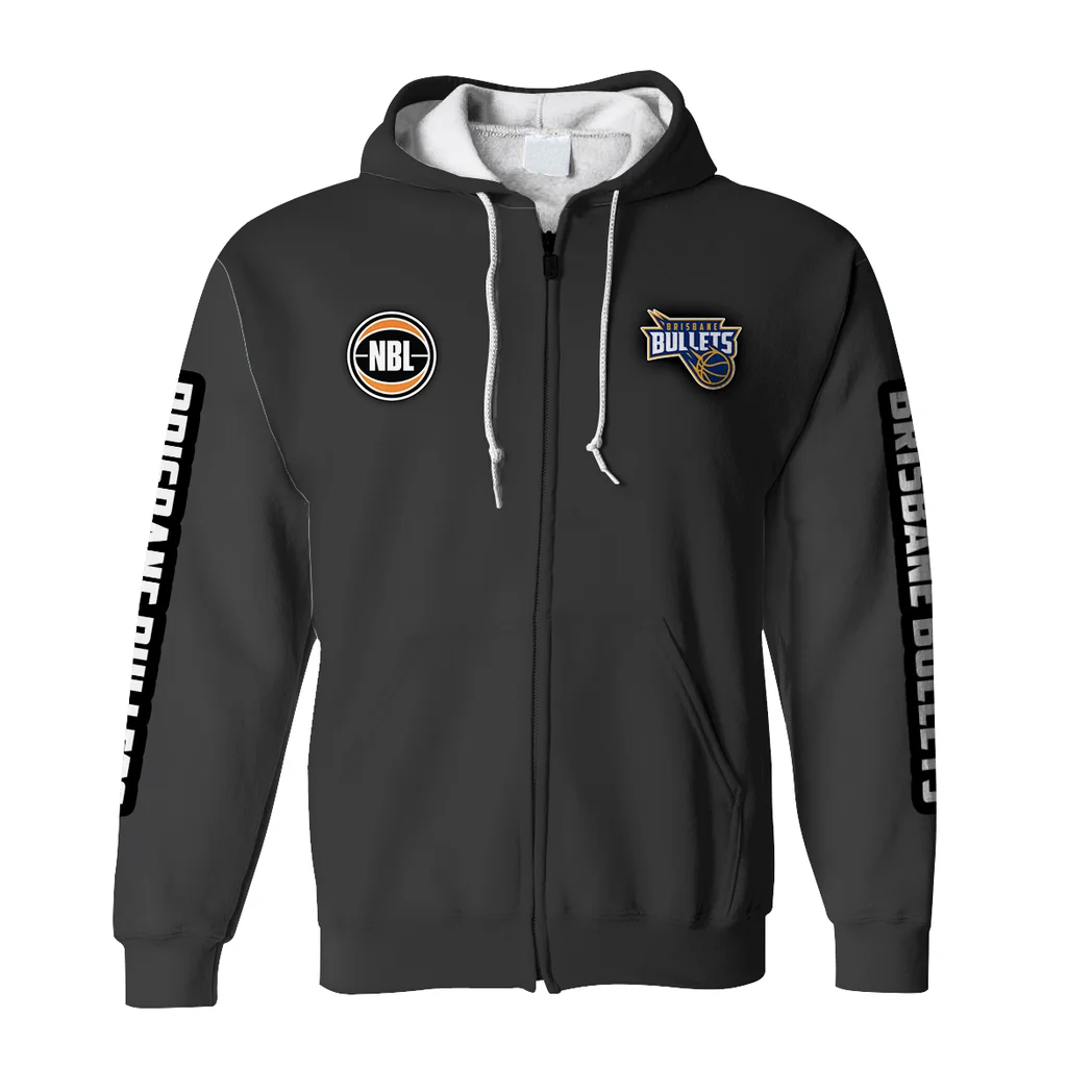 Brisbane Bullets Zipper Hoodie  NBL 2025 For Fan Brisbane Bullets HVN1162072525BB HVN1162072525BBZHD - Black