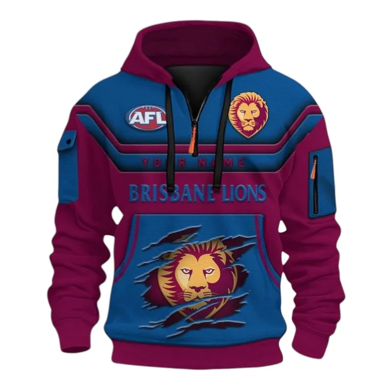 Custom Half-Zip Hoodie 3D Printed for Brisbane Lions Fans – Game-Ready Comfort Meets Personalized Power