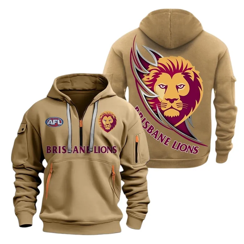 Brisbane Lions Fans Gift Hoodie Half Zipper, All Over Print Hoodie Half Zipper For Sport Fan AFL142071225124 - Khaki