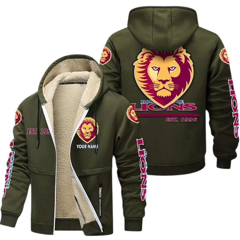 Cheer louder and layer smarter with this Brisbane Lions-inspired fleece hoodie jacket, engineered to keep you warm, stylish, and game-day ready. Whether you’re heading to the stadium, tailgating with friends, or watching from home, this zip-up hoodie combines cozy comfort with bold fan energy – because loyalty doesn’t freeze when the temperature drops.