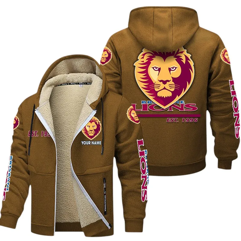 Cheer louder and layer smarter with this Brisbane Lions-inspired fleece hoodie jacket, engineered to keep you warm, stylish, and game-day ready. Whether you’re heading to the stadium, tailgating with friends, or watching from home, this zip-up hoodie combines cozy comfort with bold fan energy – because loyalty doesn’t freeze when the temperature drops.
