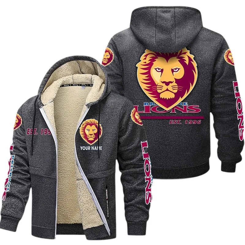 Cheer louder and layer smarter with this Brisbane Lions-inspired fleece hoodie jacket, engineered to keep you warm, stylish, and game-day ready. Whether you’re heading to the stadium, tailgating with friends, or watching from home, this zip-up hoodie combines cozy comfort with bold fan energy – because loyalty doesn’t freeze when the temperature drops.