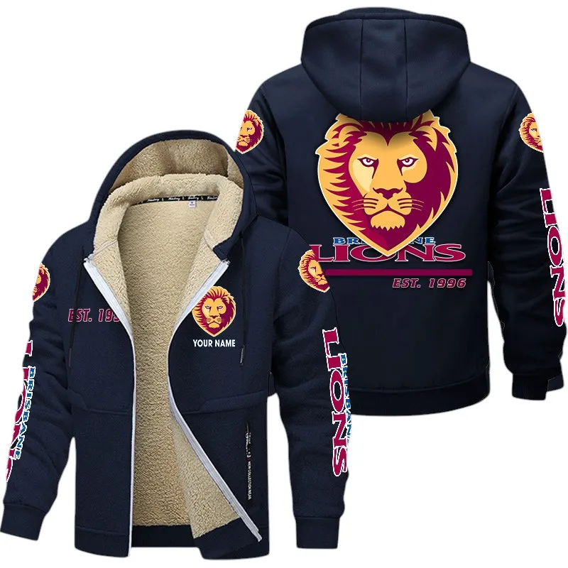 Cheer louder and layer smarter with this Brisbane Lions-inspired fleece hoodie jacket, engineered to keep you warm, stylish, and game-day ready. Whether you’re heading to the stadium, tailgating with friends, or watching from home, this zip-up hoodie combines cozy comfort with bold fan energy – because loyalty doesn’t freeze when the temperature drops.