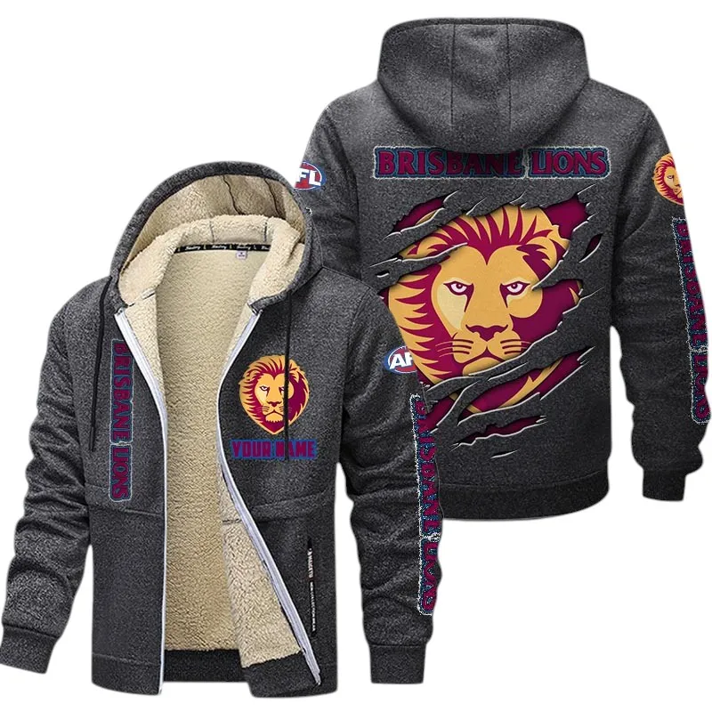 Cheer louder and layer smarter with this Brisbane Lions-inspired fleece hoodie jacket, engineered to keep you warm, stylish, and game-day ready. Whether you’re heading to the stadium, tailgating with friends, or watching from home, this zip-up hoodie combines cozy comfort with bold fan energy – because loyalty doesn’t freeze when the temperature drops.