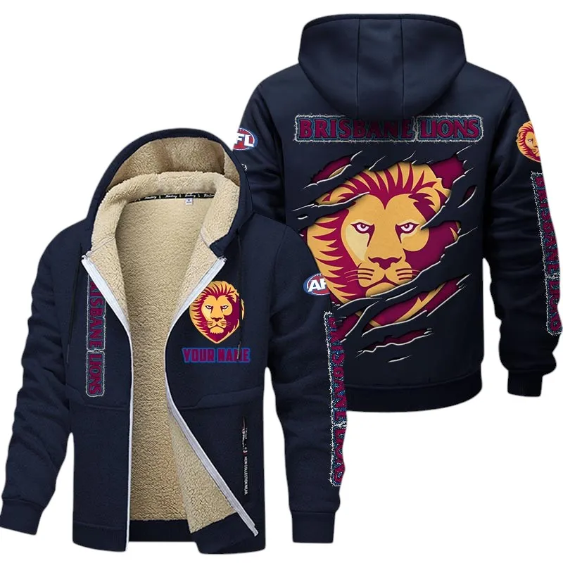 Cheer louder and layer smarter with this Brisbane Lions-inspired fleece hoodie jacket, engineered to keep you warm, stylish, and game-day ready. Whether you’re heading to the stadium, tailgating with friends, or watching from home, this zip-up hoodie combines cozy comfort with bold fan energy – because loyalty doesn’t freeze when the temperature drops.