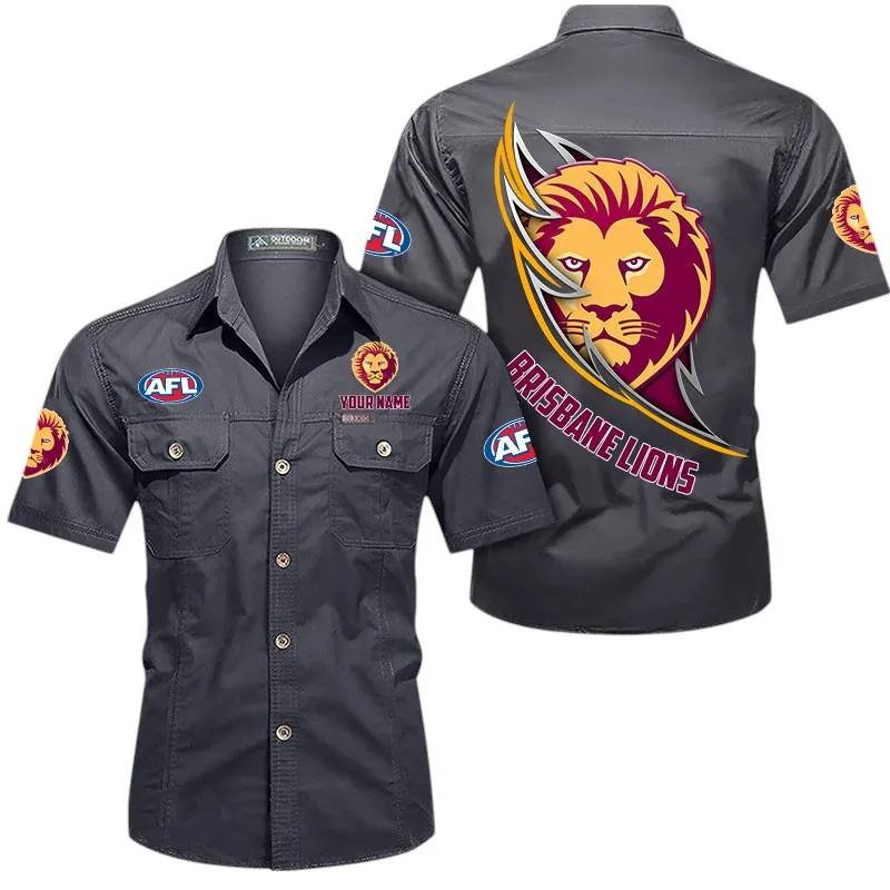 Brisbane Lions Fans Gift Short Sleeved Shirt, All Over Print Shirt For Sport Fan, Custom Name AFL155071425140 – Gray