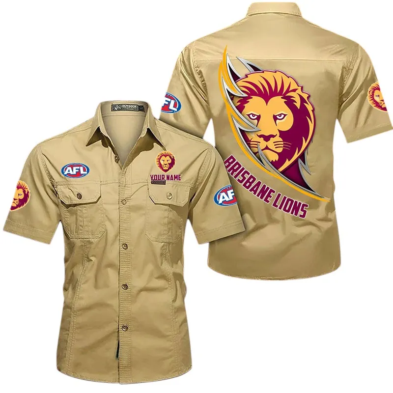 Brisbane Lions Fans Gift Short Sleeved Shirt, All Over Print Shirt For Sport Fan, Custom Name AFL155071425140 – Khaki
