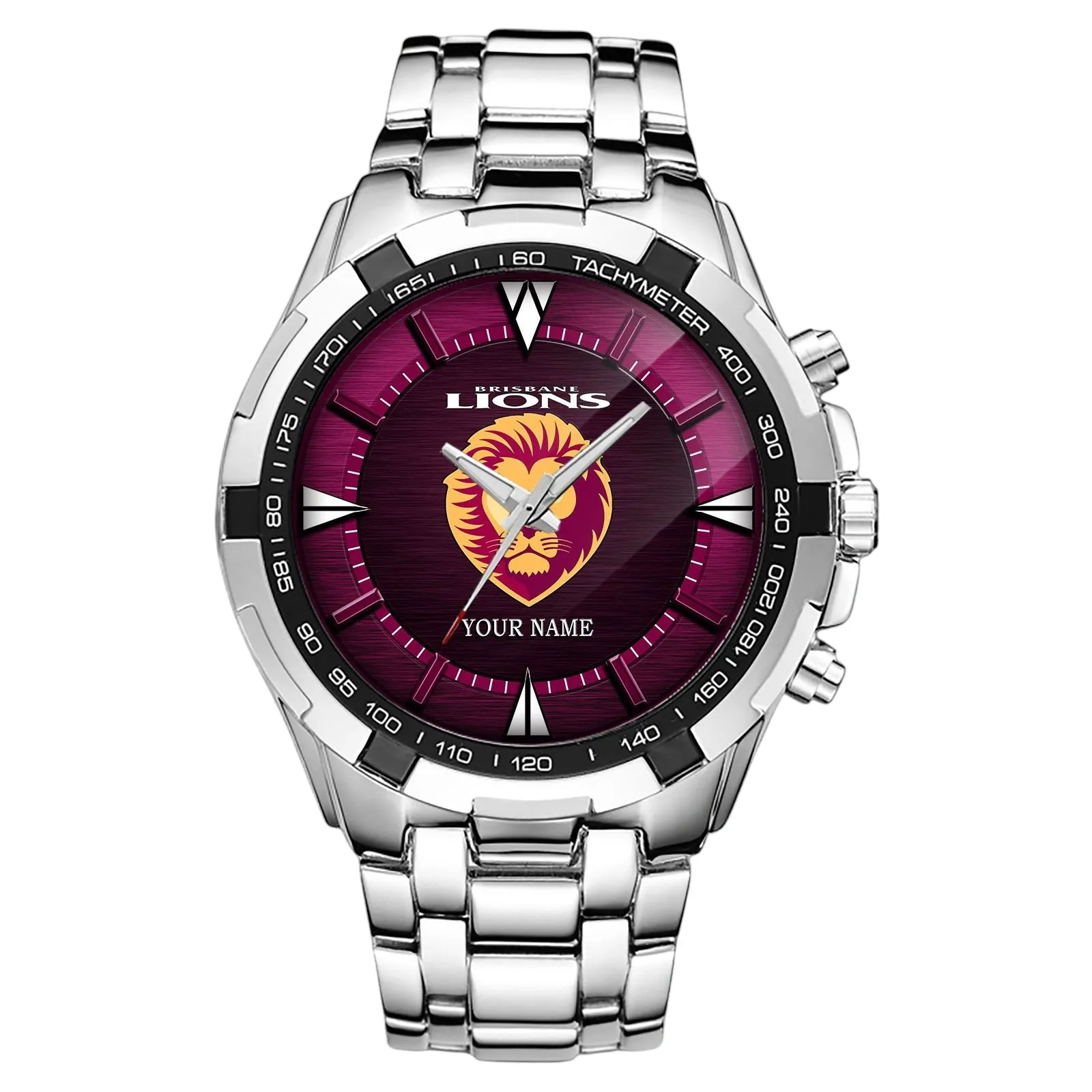 Brisbane Lions Fans Gift Steel Watches, All Over Print Watches For Sport Fan, Custom Name AFL151071525131 - Silver