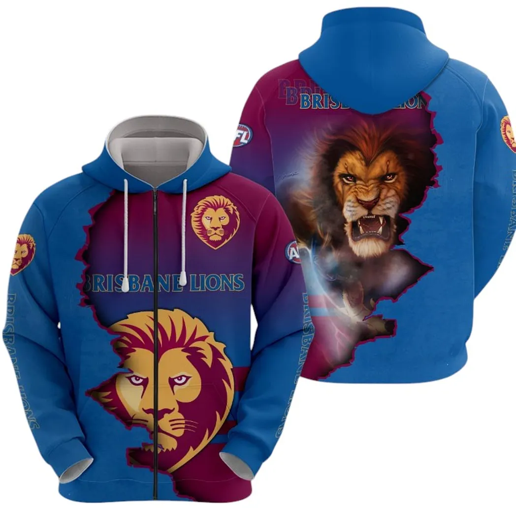 Brisbane Lions Zipper Hoodie, All Over Print Zipper Hoodie Brisbane Lions DAFL1346252042