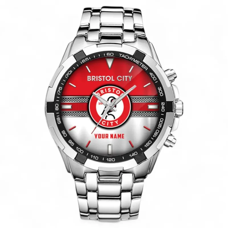 Bristol City Fans Gift Steel Watches, All Over Print Steel Watches For Sport Fan, Custom Name EPL99072825002